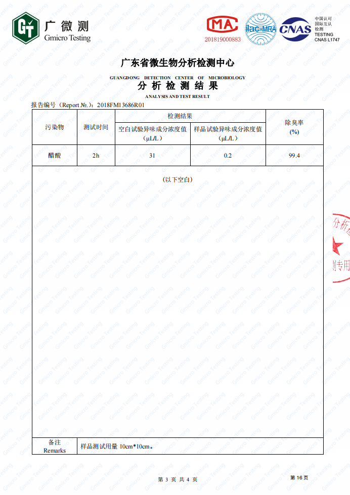 臭味异味去除率≥99.99%